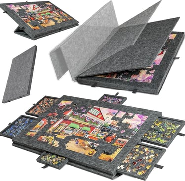 GOOFII Jigsaw Foldable & Tilting Puzzle Board with 6 Drawers and Covers, Portable Puzzle Table Built-in Stands for Angle Adjustments, Puzzle Mat with Storage for Adults (1500 pcs)